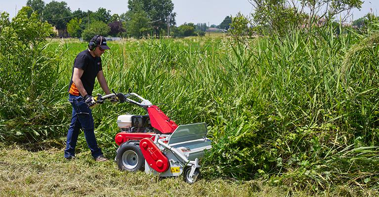The Oleo-Mac range of wheeled brushcutters and shredders is designed to meet the needs of home users as well as professional gardeners and groundskeepers. These are machines distinguished by their sturdy construction and cutting power: they are ideal tools for mowing and shredding long, thick-stemmed grass, clearing undergrowth and tidying verges and the banks of ditches.