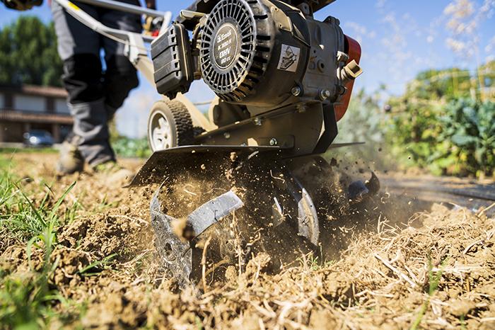 When preparing soil for your vegetable patch with manual tools or a rotary tiller, we advise you to wear suitable footwear, such as Oleo-Mac chain-resistant high boots with non-slip sole, rigid toecap and blade blocking protection on the top of the foot and on the shin.