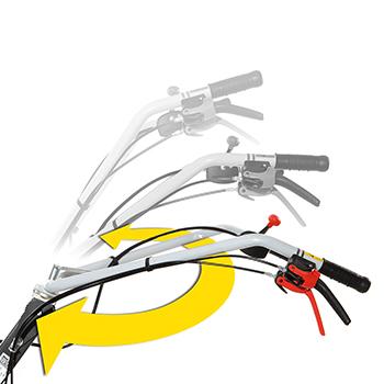 To vary the tilling depth, i.e. the distance that the rotor blades reach into the earth, adjust the position of the rotary tiller’s jackleg (or control bar). It may be necessary to make a second pass when tilling: the first breaks up the clods, while the second – with a slower and more incisive movement – achieves the ideal soil for seeding.
