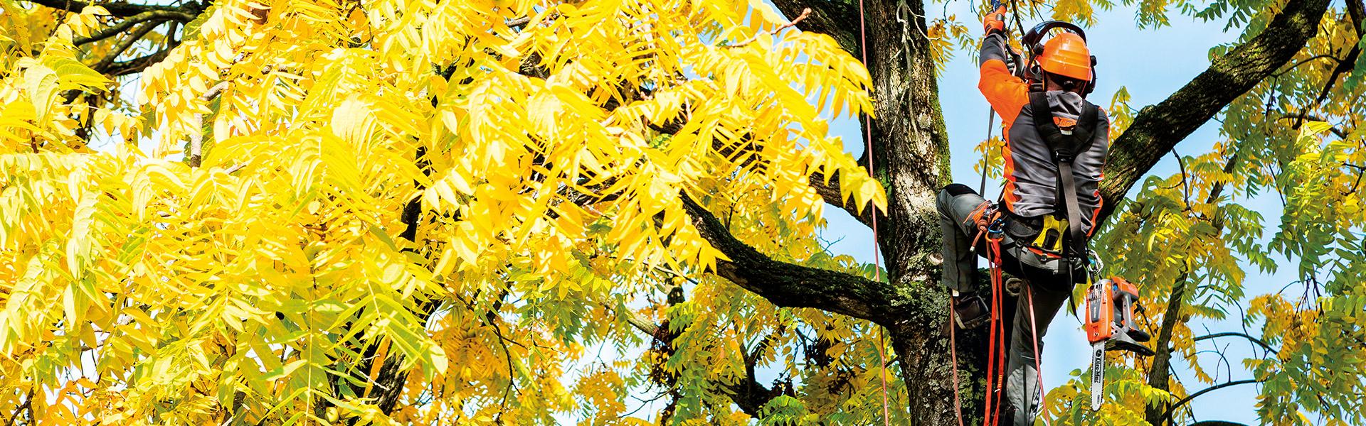 Tree-climbing is a fairly complex activity that requires experience and advanced cutting techniques. Therefore, in terms of equipment, it’s a good idea to use a pruning chainsaw, which is suited to pruning and maintaining plants, olive trees and fruit trees.