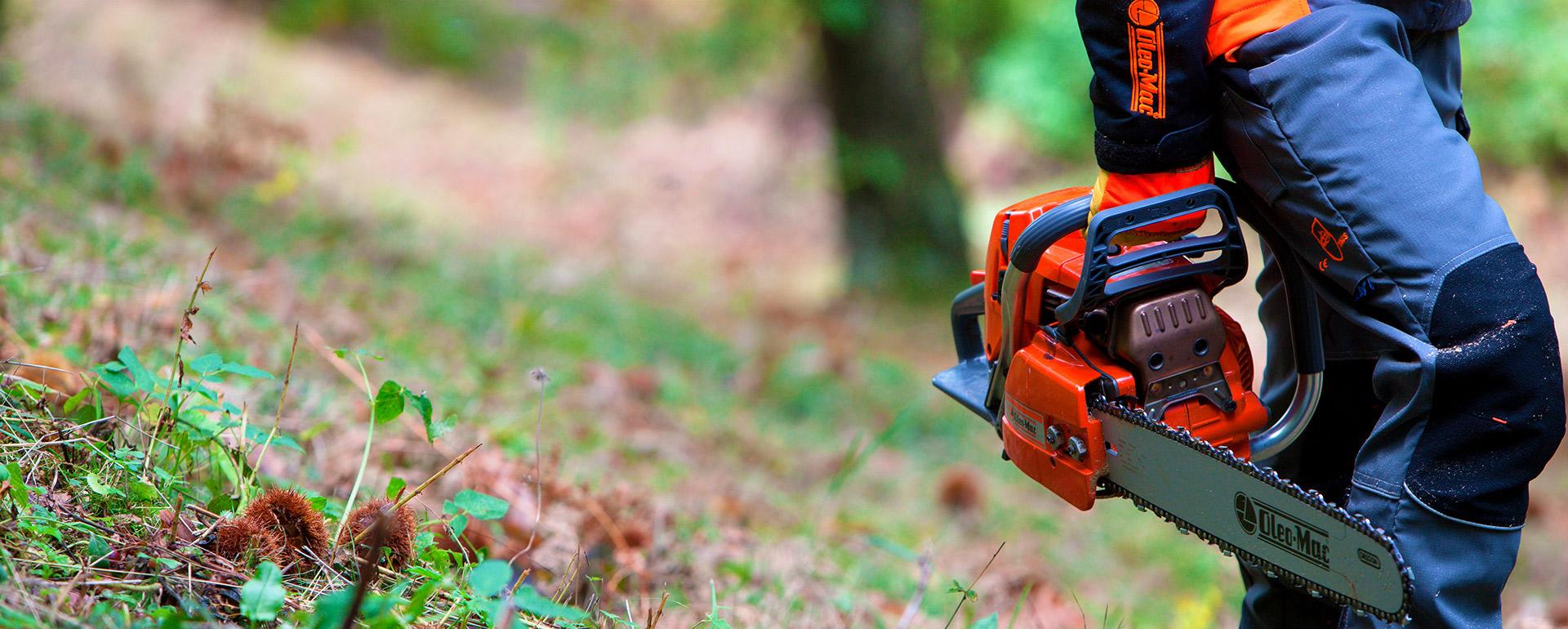 Pruning chainsaws, which are available with different displacements and guide bar lengths, are the most useful and versatile machines because they are easy to move around among vegetation when working on small and medium-sized branches, allowing fast and agile manoeuvring for maximum efficiency.