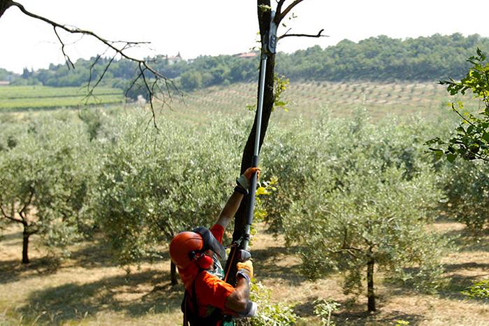 Tools for pruning tall trees and high branches in general can be manual or petrol-engine, electric or battery-powered. The common factor of pruners for high branches, including manual and power tools, is the handle with telescopic pole that greatly increases the range of action: you can make cuts at height while remaining on the ground. This means there's no need to resort to ladders, so you can work more safely.