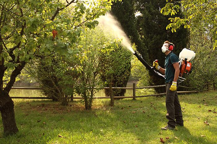 With a backpack mistblower you can apply pesticide treatments—namely fungicides, insecticides, acaricides etc. —as well as other chemical spray treatments, such as weed killers or plant growth regulating products.