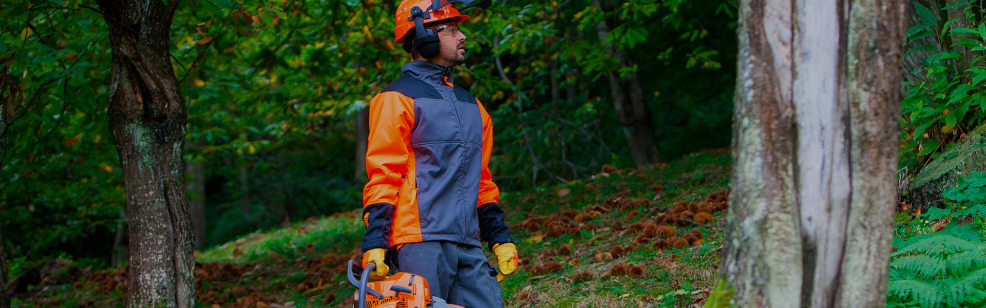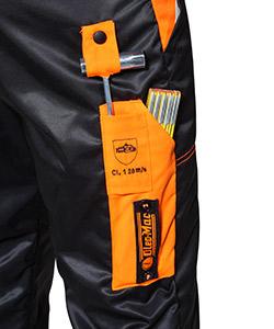Energy trousers with chain-resistant protection, lightweight, breathable, water repellent, good fit. Waterproofing provides protection against water and liquid chemicals.
