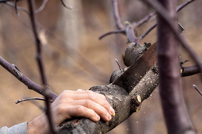 Although pruning tasks depend on the tree species and the type of cultivation, as well as the age of the fruit trees, there are standard procedures. First, tidy the foliage by removing any suckers remaining after summer pruning, as well as any diseased, damaged or dry branches, and stumps caused by breaks or previous pruning attempts.