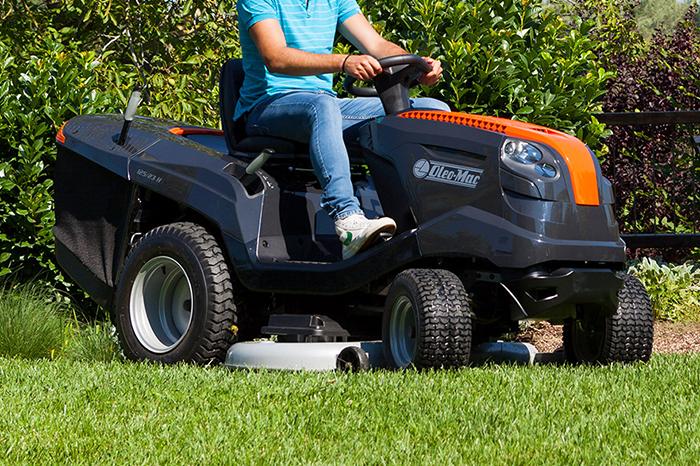 The OM 93/16 K rear-discharge garden tractor also has a mulching feature as standard; alternatively you can collect clippings in the 290 L grass-catcher. Suitable for areas up to 5000 m2, it has a cutting width of 92 cm and a top speed of 8.8 km/h.
